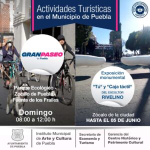 • Gran Paseo de Puebla, regresa este circuito en su horario habitual, de 8:00 a 12:00 horas. Habrá préstamo de bicicletas en las estaciones de servicios del Zócalo y la Fuente de los Frailes.